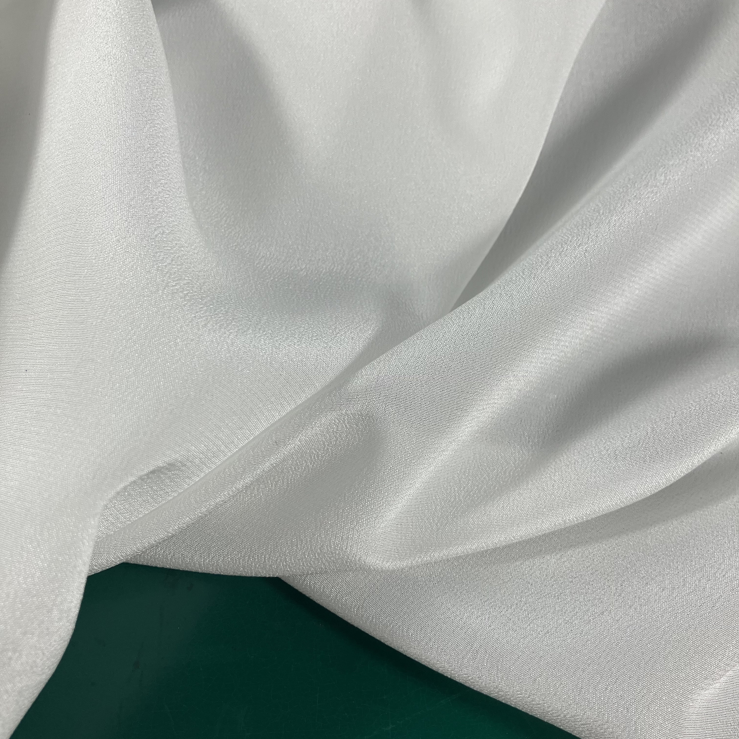 Medium weight silk crepe de chine fabric with a textured surface, often used to make silk scarves.