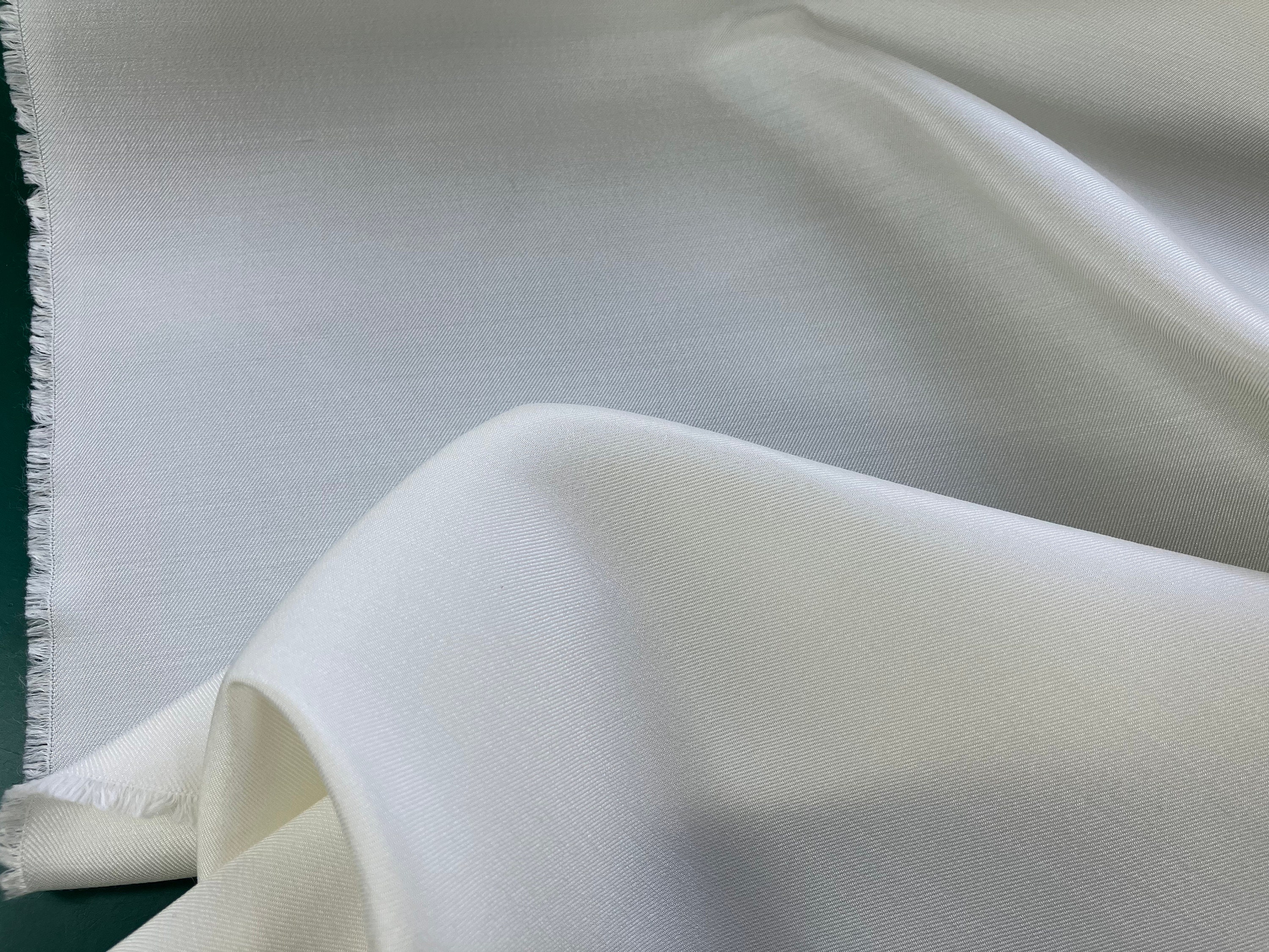 Heavy silk wool twill is a durable, luxurious fabric blending soft silk and warm wool, woven in a diagonal twill pattern (twill weave) for structure, a subtle ribbed texture, good drape, and wrinkle resistance, making it ideal for high-end apparel like suits, coats, and structured dresses, balancing the sheen of silk with wool's body.