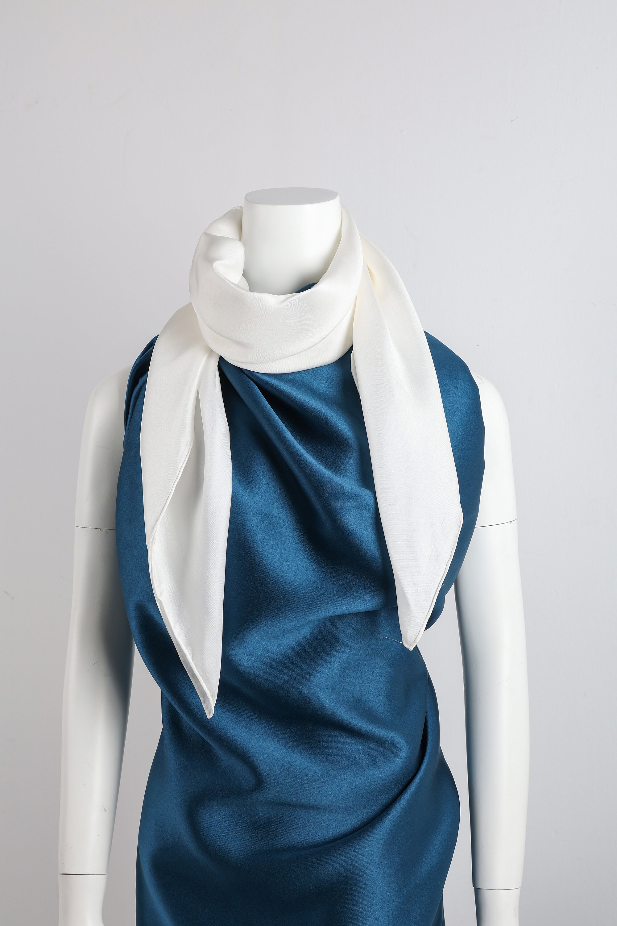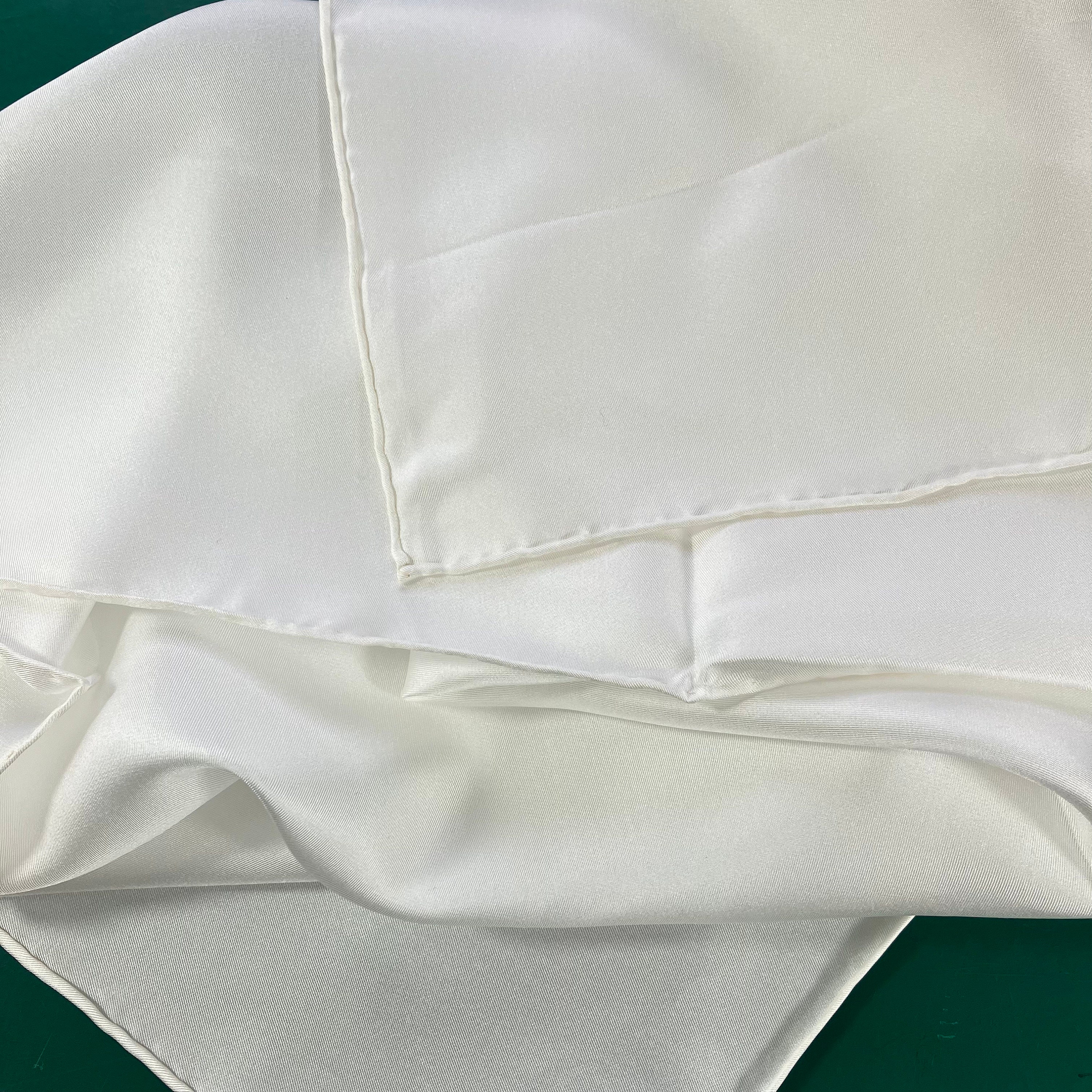 We use 12 momme silk twill fabric, cut and hand rolled with to create these undyed silk scarves.