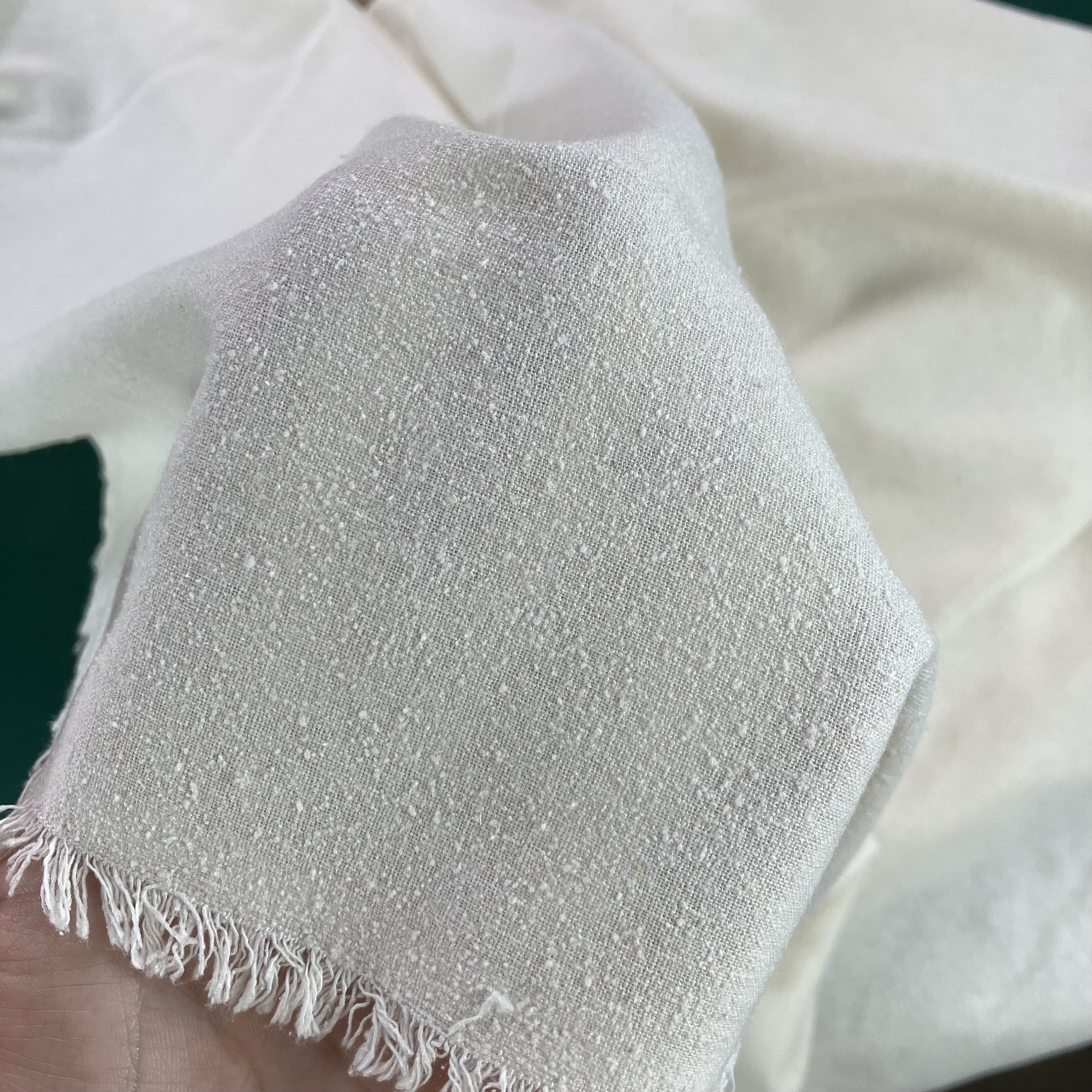 Noil poplin is a unique silk fabric woven from short, leftover silk fibers (noil), giving it a naturally nubby, slubby texture and matte finish, unlike smooth silk, but it's woven in a tight poplin structure for durability, breathability, and a slightly crisp feel, making it great for clothing, decor, and art projects where texture and natural drape are desired.