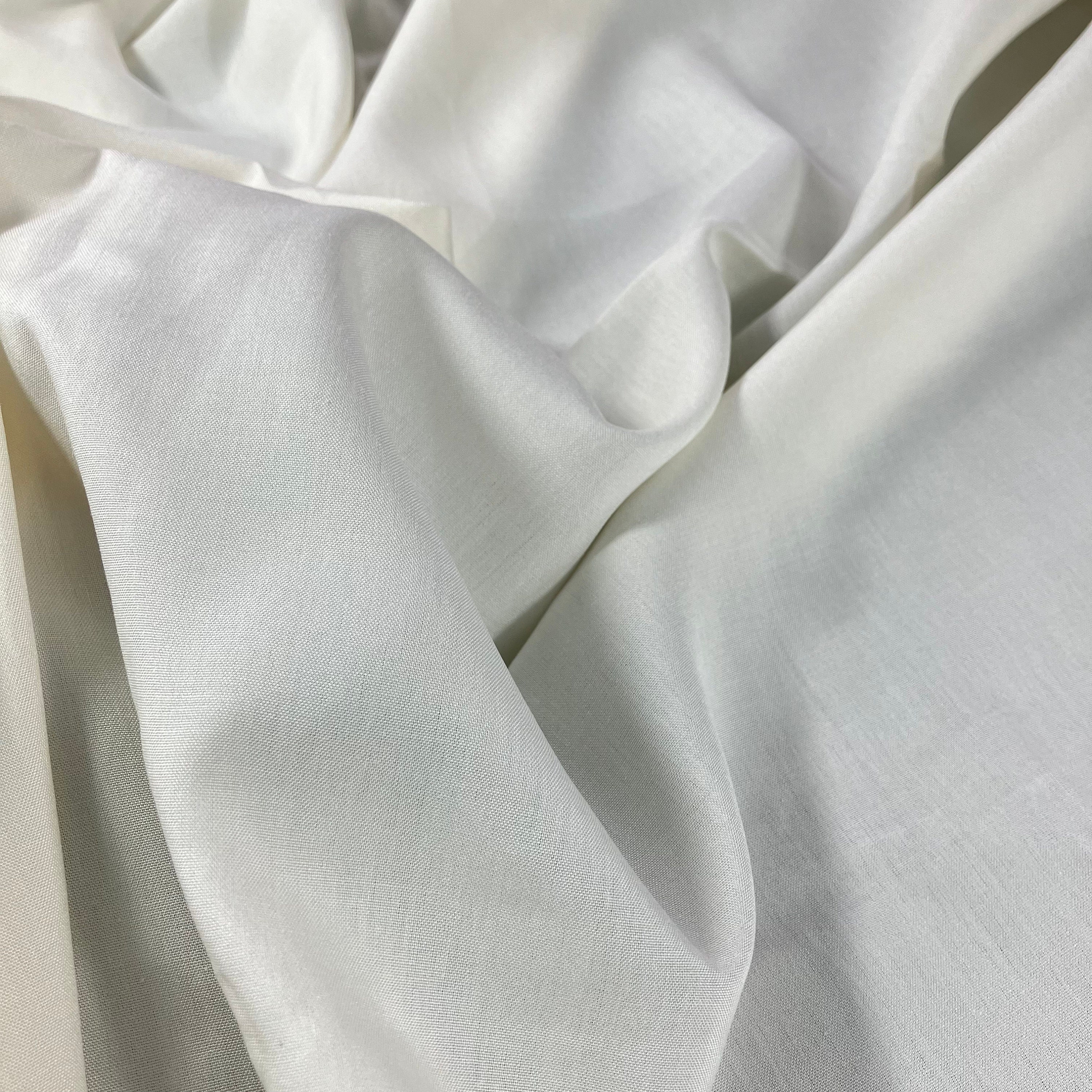 Fuji silk is a durable, medium-weight, 100% spun silk fabric with a soft, matte, and slightly brushed texture. Originally from Japan, this opaque, breathable material is often used for high-end clothing like shirts, dresses, and linings, as well as home decor. It typically has a natural white color, making it ideal for dyeing.
