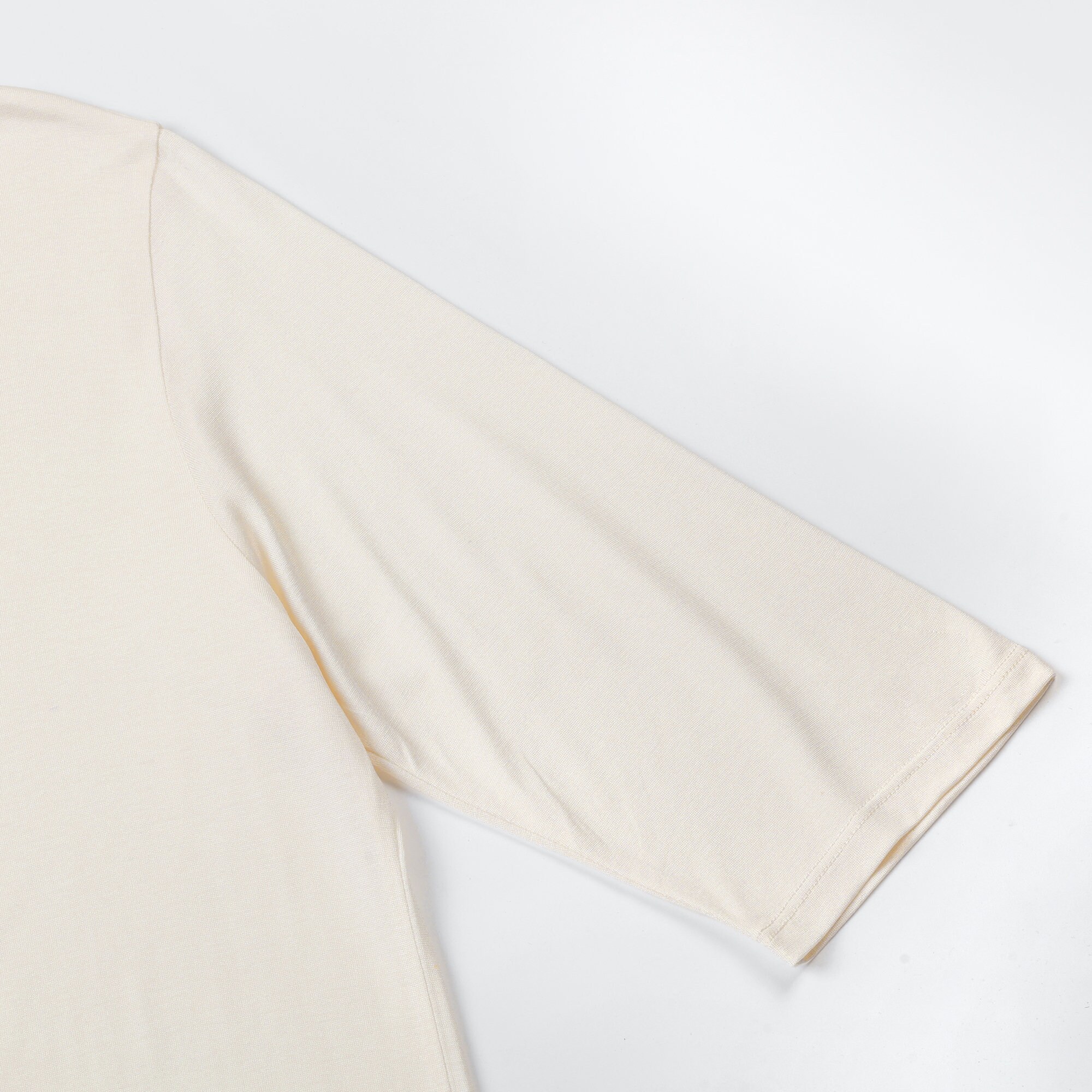 Made of soft and comfortable knit spun silk fabric, and the whole T-shirt is sewn with 100% silk thread. This T-shirt can also be used for dyeing designs.
